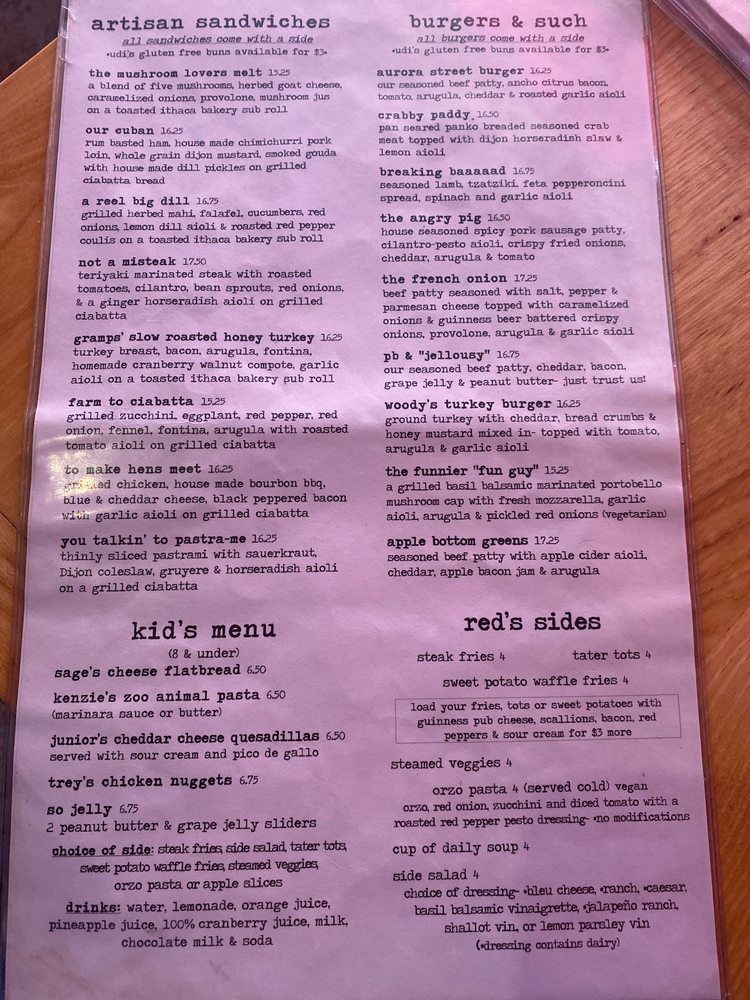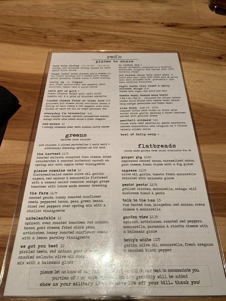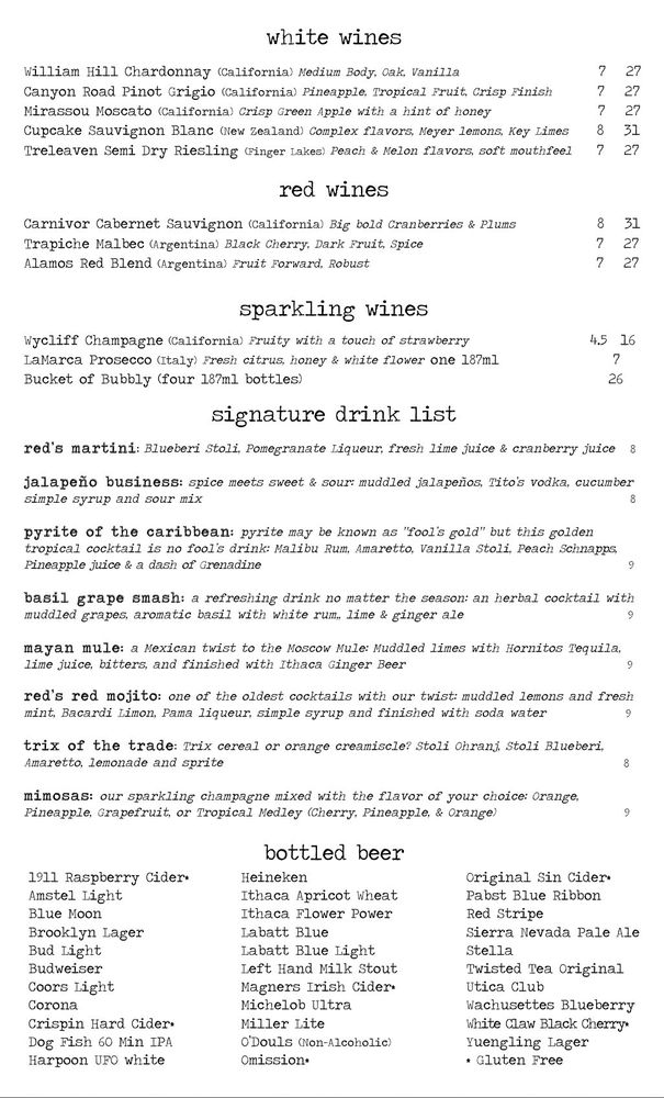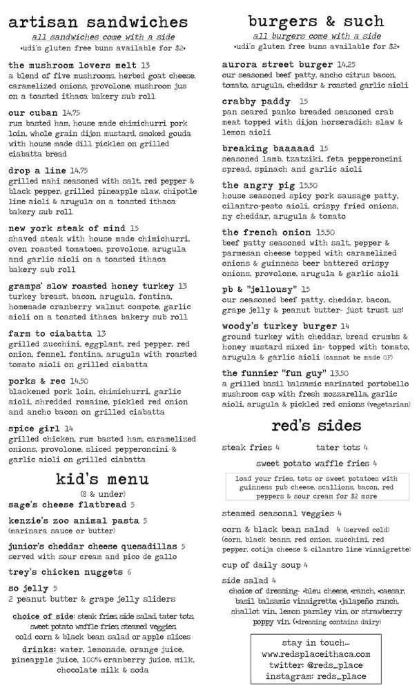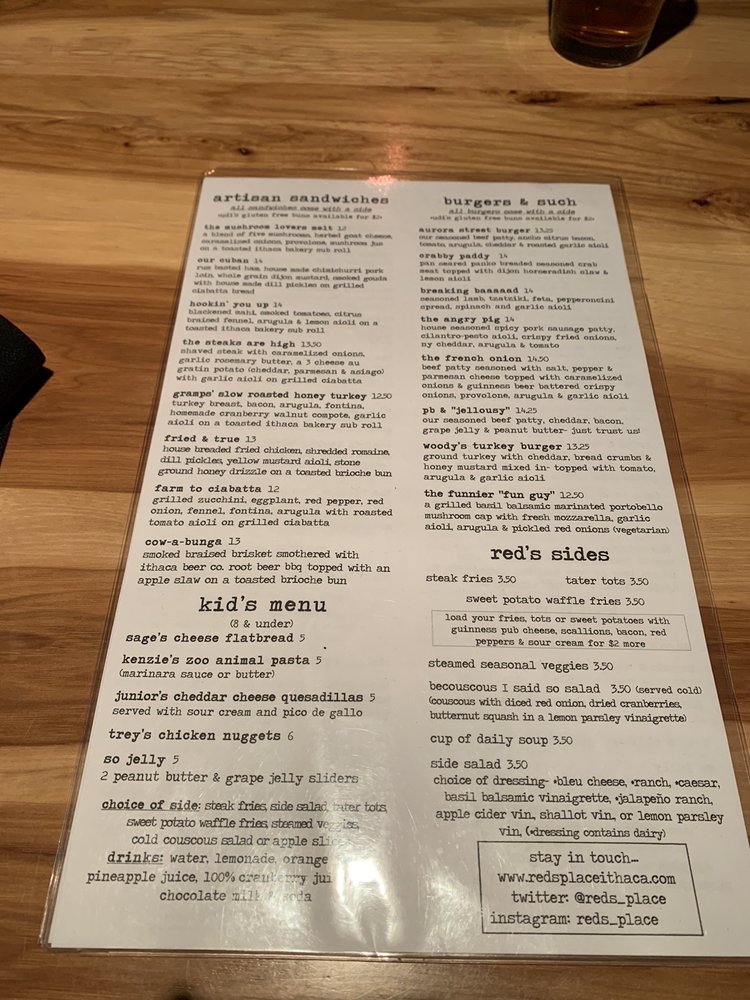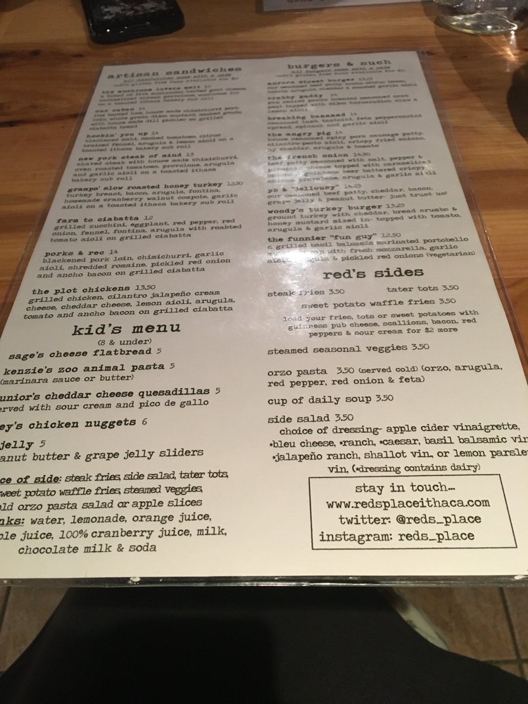 Red's Place, located in Ithaca, NY, is a standout gastropub offering a variety of options for food enthusiasts. With a menu boasting mini French onion soup bread bowls, delicious sandwiches, and innovative soups like the Tom kha, Red's Place provides a unique dining experience. The warm ambience, friendly service, and excellent beer selection add to the overall appeal of this establishment. Customers rave about the red sauce and ricotta appetizer, the flavorful lamb burger, and the creative dishes like the pot of gold and sassquash. Whether you're looking for a casual lunch spot, a place to gather with friends, or a family-friendly dining option, Red's Place has something for everyone. Overall, Red's Place is a must-visit for those seeking quality food in a cozy atmosphere.